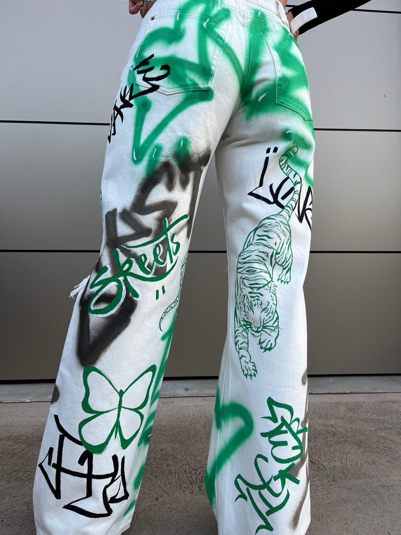 Each piece is hand painted with fabric paint